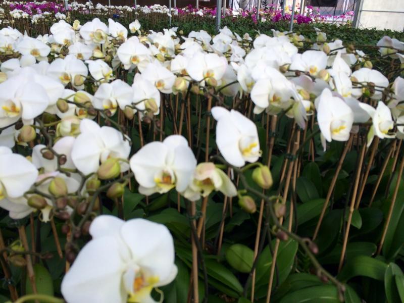 We have phalaenopsis that come into gorgeous bloom naturally year round due to our location and production techniques. Oncidiums and paphiopedilums are almost always available.